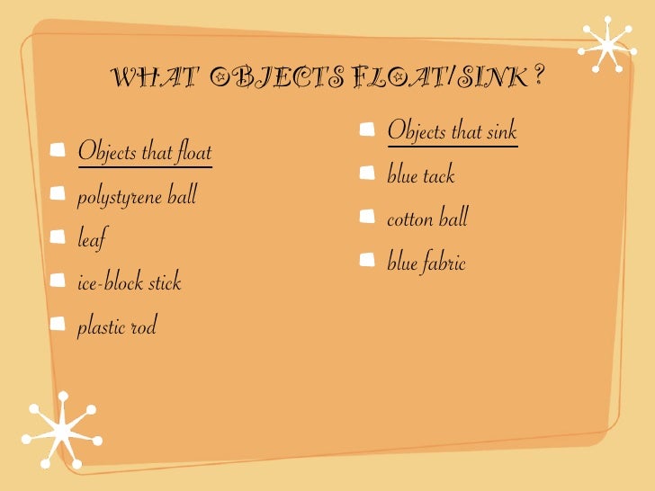 Does magic make things sink and float? Do invisible forces make thing sink and float? No! It's not because of all of that! If you want to know what it's... 6 Learning Goals I can make predictions about whether something will sink or float and give reasons for my predictions. I can analyze data that I collect to 20 Overarching Question What can we now say about our overarching question? What makes things sink or float? 21 Traffic Light Traffic light your I... Let that sink in. (self.Showerthoughts). submitted 3 years ago by foomly. Stopping and thinking about something does